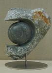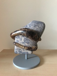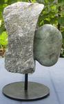 2014Eenvoud, uit braziliaans speksteen met balletje albast op RVS sokkel