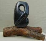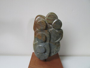 2013Doorgang, gemaakt van speksteen uit Peru. Op houten sokkel.