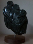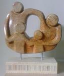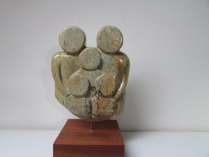 2014Gezin, 3 personen uit braziliaans speksteen op onbewerkt houten sokkel.