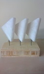 2014'Met de wind mee' uit witte albast op houten sokkel.