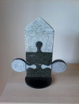 2013Vreugde uit witte albast, op RVS sokkel.