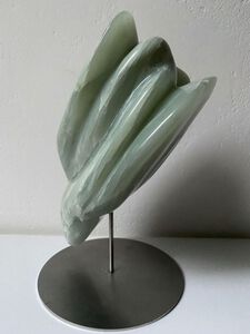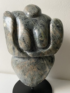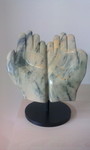 2015Handen uit braziliaans speksteen op stalen sokkel, in opdracht gemaakt.
