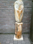 2014Gezicht uit albast, de achterkant is glad gemaakt. Sokkel is van RVS.