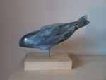 2023Vis uit Braziliaans speksteen, op RVS sokkel.