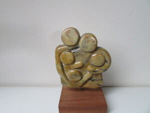 2014Gezin uit Braziliaans speksteen op onbewerkt houten sokkel