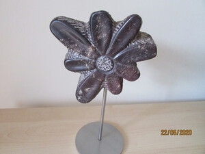 2013Bloem uit indiaas speksteen op RVS sokkel.
