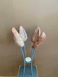 2014Roze tulp uit chinees speksteen op stalen sokkel (wit geverfd)